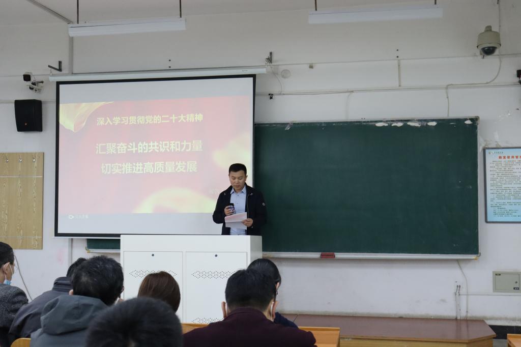 为深入学习宣传贯彻党的二十大精神,落实好《中共乐竞体育委员会关于深入学习宣传贯彻党的二十大精神的方案》,3月28日下午,工商管理学院党委于博学楼C108教室主持召开学习贯彻党的二十大精神宣讲报告会,会议由管理学院党委书记董文武主持,管理学院师生代表、继续教育学院、科技园教职工代表参加。
