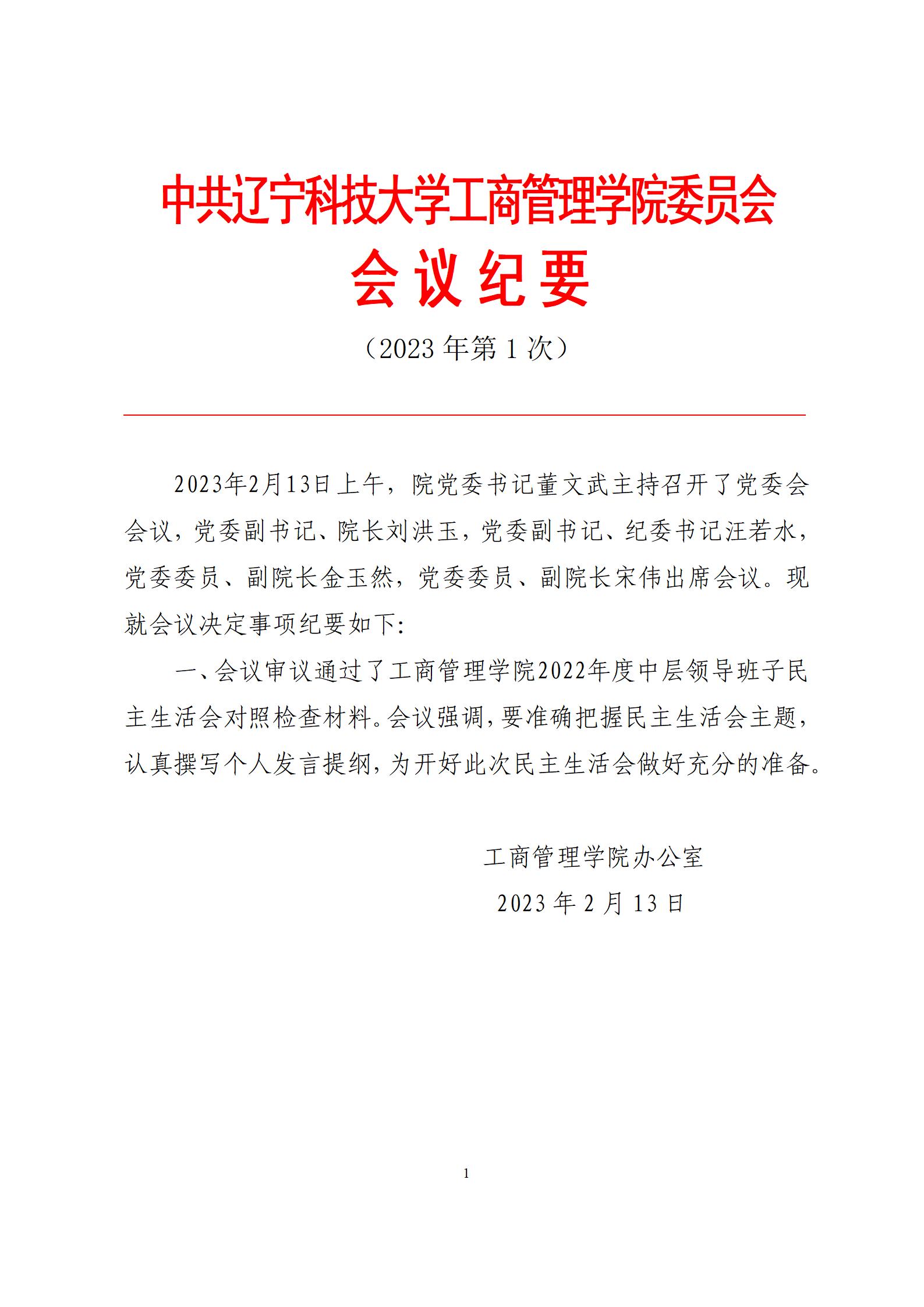 中共乐竞体育工商管理学院委员会会议纪要(2023年第1次)