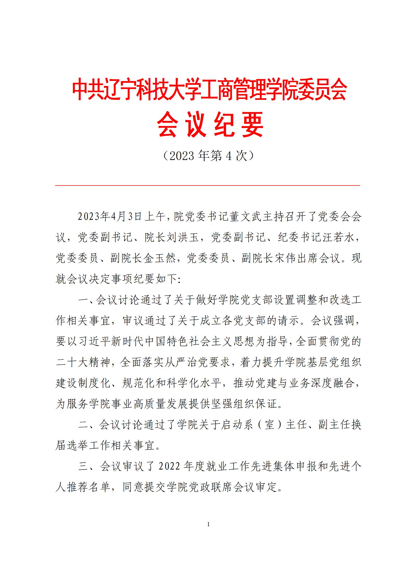 中共乐竞体育工商管理学院委员会会议纪要(2023年第4次)
