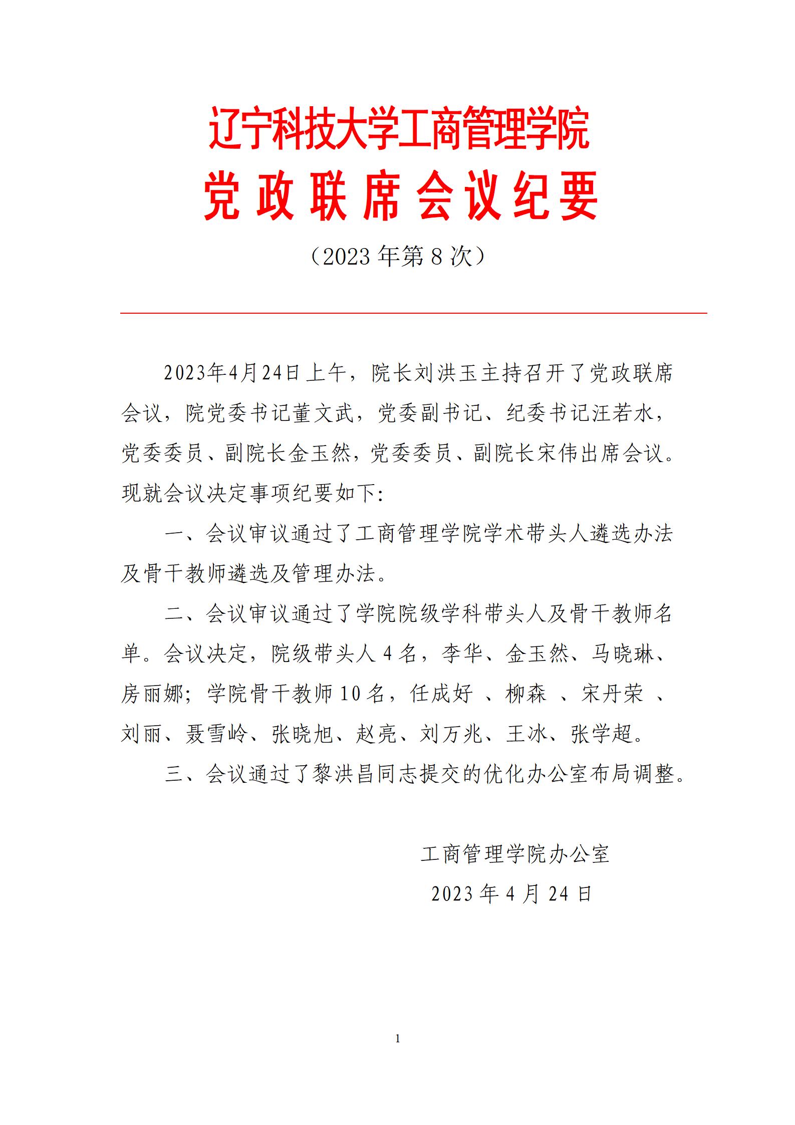 乐竞体育工商管理学院党政联席会议纪要(2023年第8次)