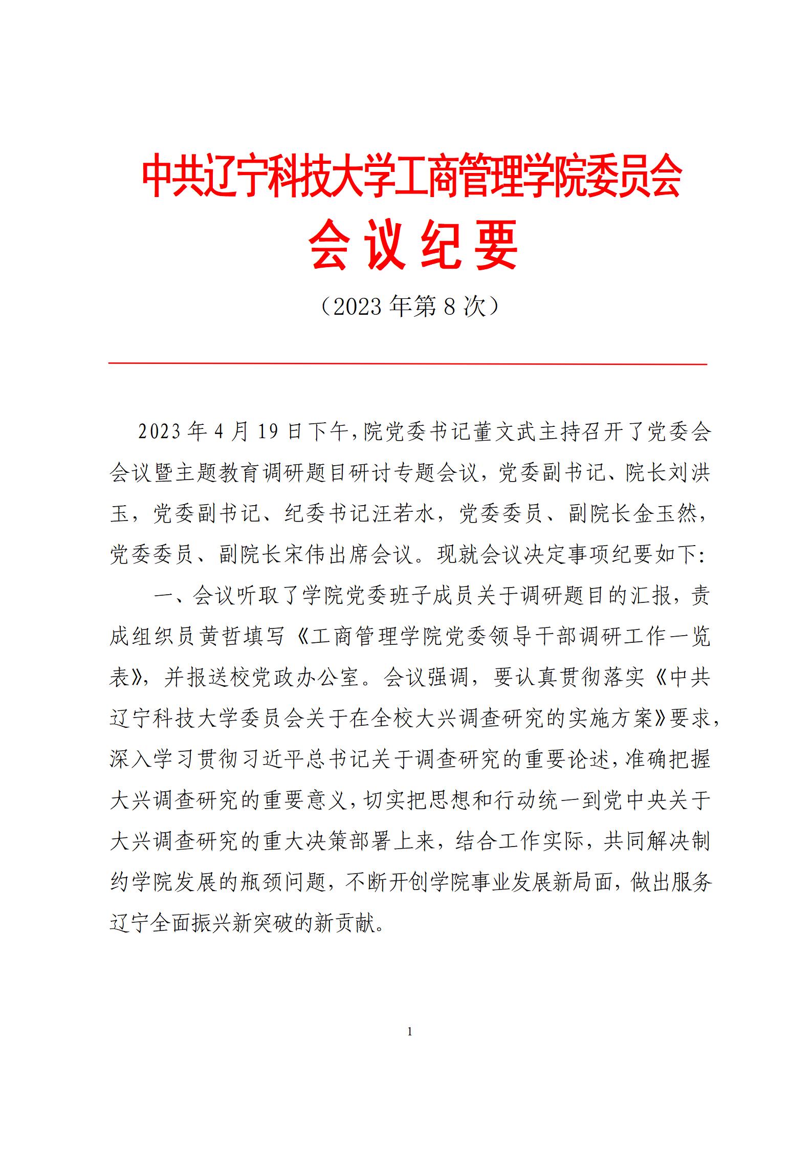 中共乐竞体育工商管理学院委员会会议纪要(2023年第8次)