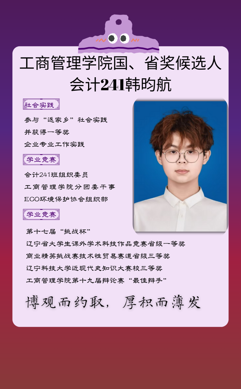 候选人:会计241韩昀航