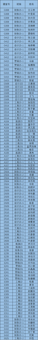 每天上午,工商管理学院对全体本科生宿舍进行检查。在检查过程中发现大多数宿舍能够保持整体干净整洁,不乱扔垃圾,桌面摆放整齐,对这些优秀宿舍给予表扬,也有一些寝室内务方面有待加强。现将检查结果通报如下: