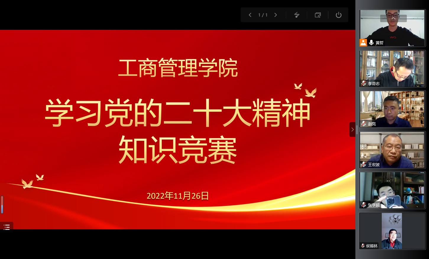 为认真贯彻落实《中共乐竞体育委员会关于深入学习宣传贯彻党的二十大精神的方案》工作要求,促进学院师生深刻领会党的二十大提出的新思想新论断、作出的新部署新要求,管理学院于11月26日晚开展“以赛促学、以学促干”学习党的二十大精神知识竞赛活动。赛前学院党委书记董文武强调,师生们要以本次知识竞赛为契机,充分学习、认真答题,确保把学习贯彻党的二十大会议精神付诸于行动、见之于成效。
