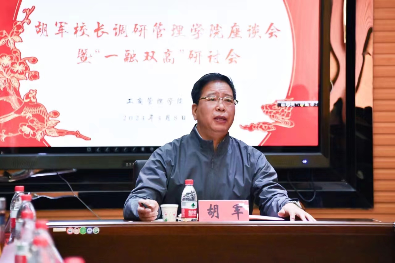 4月8日上午,乐竞体育工商管理学院召开“一融双高”专题研讨会。校党委副书记、校长胡军出席会议并讲话。管理学院领导班子成员、系室主任、党支部书记及科级以上干部参加研讨。