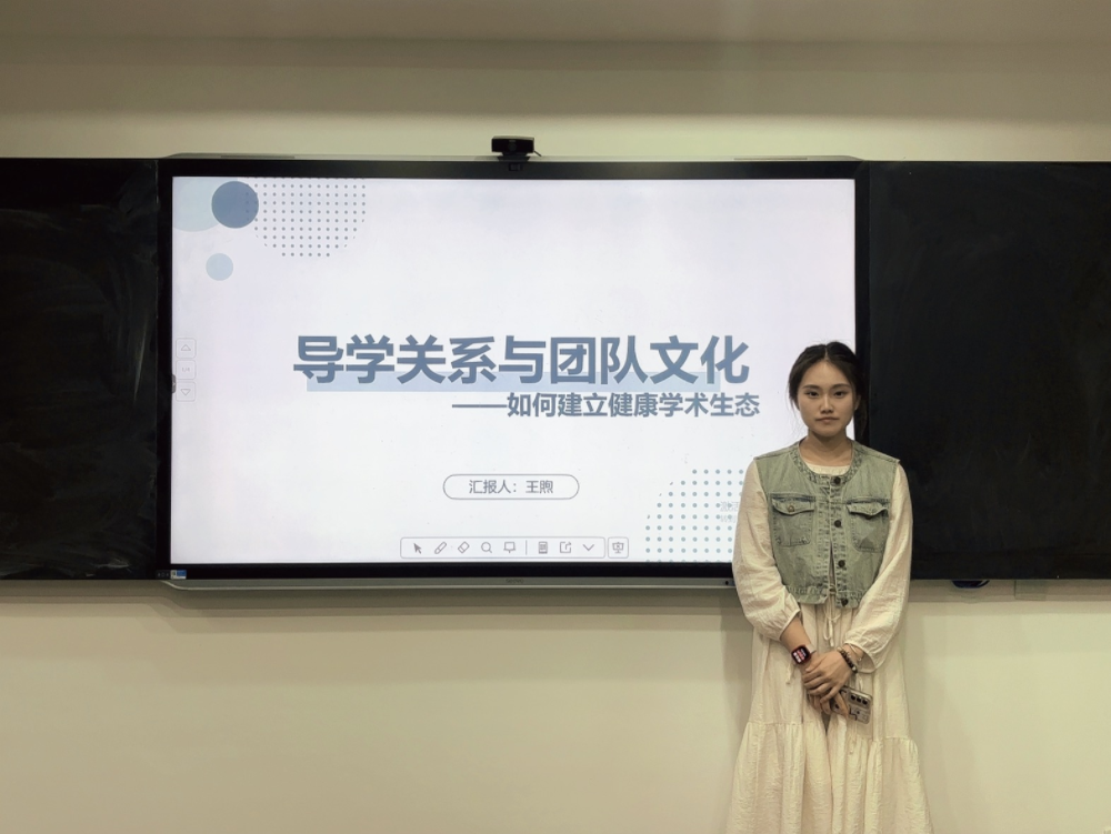 围绕“科学精神与创新思维”模块,MBA2023级孟诗遥同学围绕价值共生、机制赋能、文化浸润三个维度展开讲述。在价值共生方面,以战略解码会、知识共享日、学术承诺书等机制实现师生价值对齐;机制赋能上,通过导师赋能矩阵、学生成长档案、学术轮值主席制度等保障学术生态运转;文化浸润里,培育匠人文化、家文化、传承文化。她表达的观点是,学术生态建设需战略规划、机制设计与文化培育,将导学关系升华为价值共同体,把团队文化锻造成精神图腾,以构建可持续发展的学术生态。研2023级王煦同学分享了关于构建良性学术生态的思考与实践经验。她系统梳理了当前学术环境中存在的典型问题,并针对上述问题,提出三方面解决路径:一是推动导学关系从“权威指导”转向“双向赋能”,强调导师需以严谨治学树立底线意识,学生应主动担责、反哺团队;二是通过“研究全生命周期管理”“学术伦理委员会”等制度筑牢规范防火墙;三是借“失败案例库”等形式激活团队内生动力。她呼吁学术界以制度为基、文化为魂,摒弃形式化协作,坚守学术纯粹性,方能构