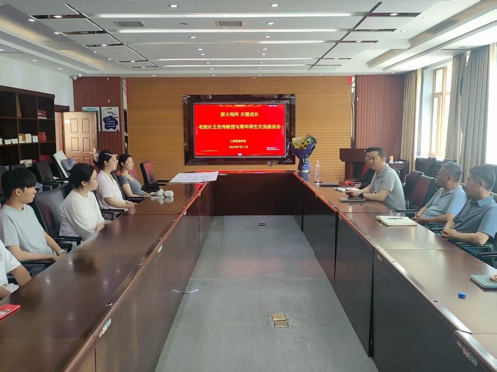2025年7月11日上午九点,工商管理学院内洋溢着温情与希望,一场以“薪火相传,关爱成长”为主题的座谈会在这里温情启幕。学院领导班子、学院师生与老院长王忠伟教授齐聚一堂,共同回顾学院发展历程,共叙师生间的深厚情谊,为学院未来的传承与发展出谋划策。