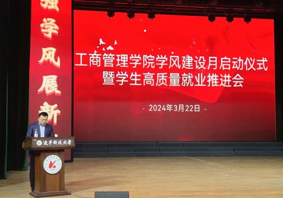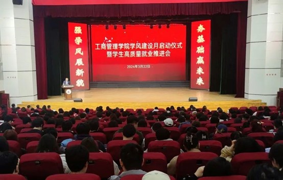 为进一步加强学院学风建设工作,推动学生高质量就业,3月22日,乐竞体育·(中国)官方网站管理学院在校礼堂举行学风建设月启动仪式暨学生高质量就业推进会。学院领导班子成员、专业教师代表、全体辅导员以及全体本科生参加会议。