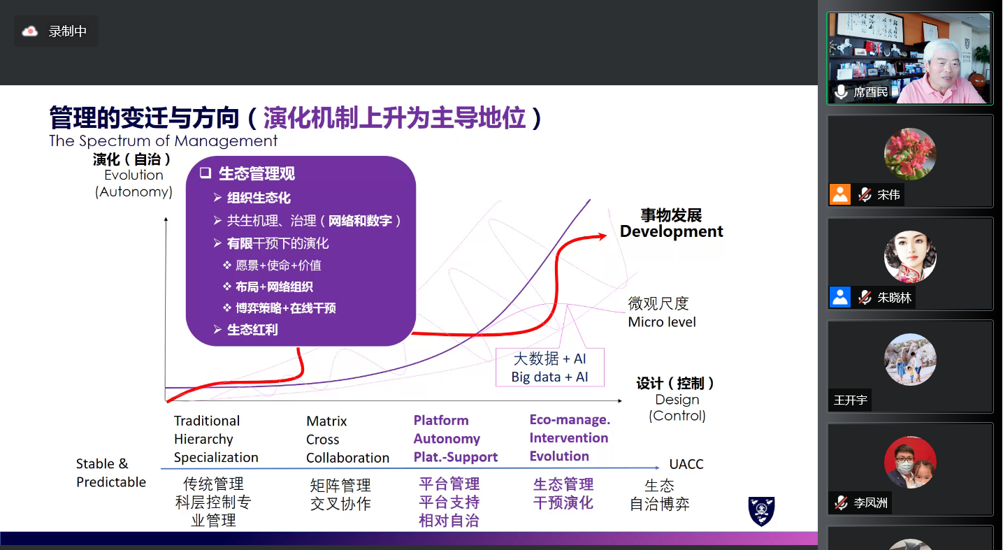 5月22日下午,工商管理学院(MBA教育中心)邀请西交利物浦大学执行校长,英国利物浦大学副校长,教育部高等学校工商管理类学科、专业教学指导委员会主任委员,西安交通大学管理学教授席酉民做题为“数智时代产业家与生态红利创获”的学术报告。报告由校党委常委、副校长胡军教授主持,工商管理学院全体教师和研究生参加了此次报告会。