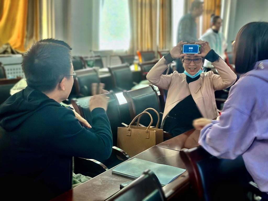 活动项目丰富多彩,同学们都乐于参与其中。活动中耳熟能详的小游戏“你来比划我来猜”颇受欢迎,看似简单的游戏,参与其中才能发觉同学们需要通过精准的表演来展现词语的含义,它更考验着团队之间的默契和协作能力。同学们搞笑的表达方式和默契的配合,让活动现场一度热烈澎湃。
