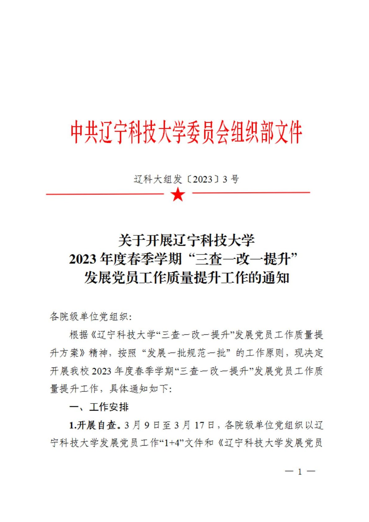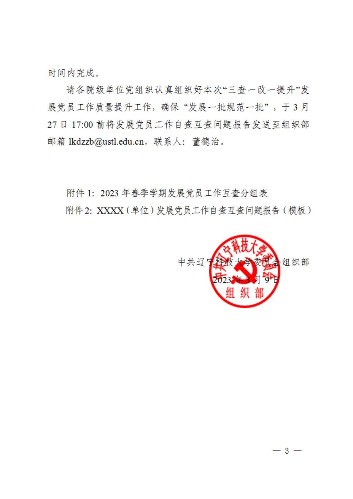 关于开展乐竞体育2023年度春季学期“三查一改一提升”发展党员工作质量提升工作的通知