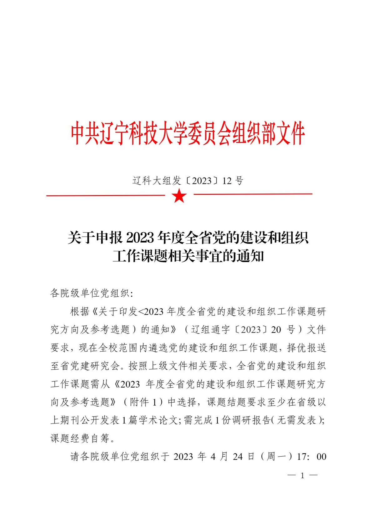 关于申报2023年度全省党的建设和组织工作课题相关事宜的通知