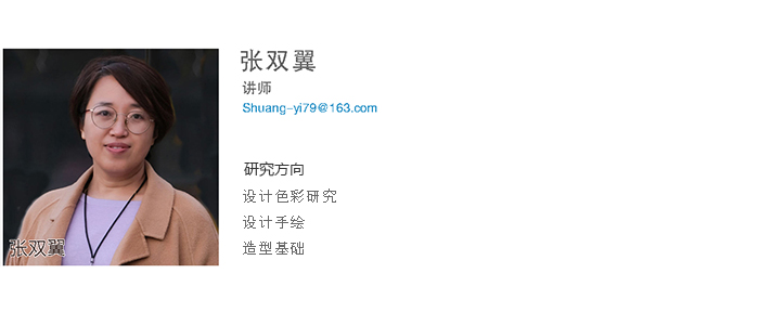 张双翼, 讲师,2003年吉林大学艺术学院艺术设计专业,文学学士;2011年吉林大学设计艺术学,硕士;现任工业设计专业专任教师,主讲《二维形态》、《手绘表现》、《产品数字化展示》等;在教学中主要研究形态构成在设计中的应用并出版专著《二维形态构成》;主持和参与多项科研项目,其中2012年获得乐竞体育教学成果二等奖;指导学生参与设计大赛,多次获得省级一二三等奖;2019年参加中国花鸟画研修院研修,2020年参加仁美大学堂中国花鸟画研修,其中绘画作品《秋韵》在书画大赛中获一等奖,并致力于将传统文化元素融入产品设计创新之中,强化产品设计的内涵,弘扬民族文化,增强文化自信。