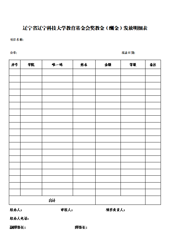 辽宁省乐竞体育教育基金会奖教金(酬金)发放明细表